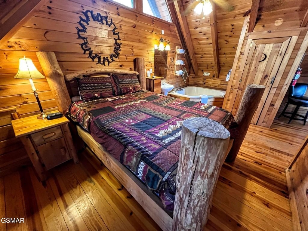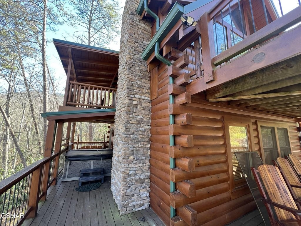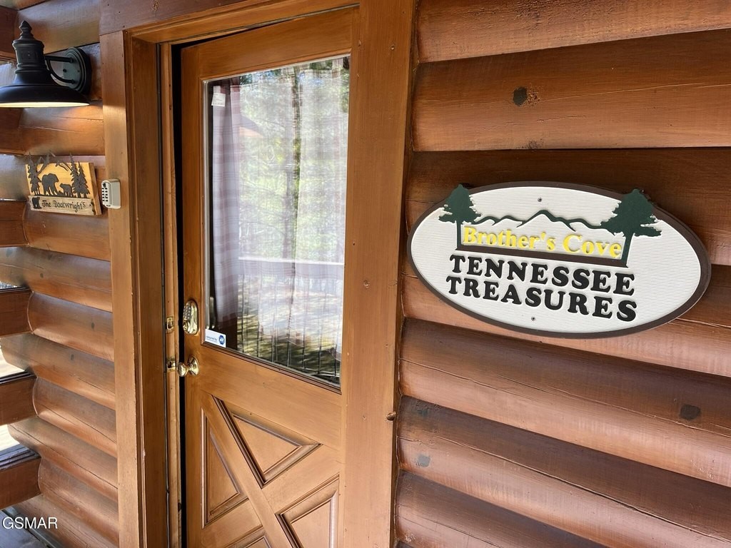 PRICE REDUCTION!! on this Charming Smoky Mountain Log Cabin - Perfect Getaway Near Pigeon Forge! Escape to your dream retreat in the heart of the Smoky Mountains! This beautiful 2-bedroom, 2-bath log cabin is nestled in the sought-after Brothers Cove Resort, just minutes from Great Smoky Mountains National Park, Dollywood, and the attractions of Pigeon Forge. Step inside to find new pine flooring throughout, adding warmth and charm to the rustic interior. The cozy wood-burning fireplace in the living room sets the perfect ambiance for chilly mountain nights. The upstairs master suite boasts a relaxing whirlpool tub, where you can soak your cares away after a day of adventure. Outdoors, unwind in your private hot tub, enjoy a meal at the picnic table, or fire up the charcoal grill for a cookout surrounded by nature. As part of Brothers Cove Resort, you'll also have access to a refreshing swimming pool-great for cooling off in the summer months. Whether you're looking for a romantic retreat or a family getaway, this cabin offers the perfect blend of seclusion and convenience-just a short drive to all the best shopping, dining, and entertainment in Pigeon Forge. Don't miss this mountain escape-schedule your showing today!